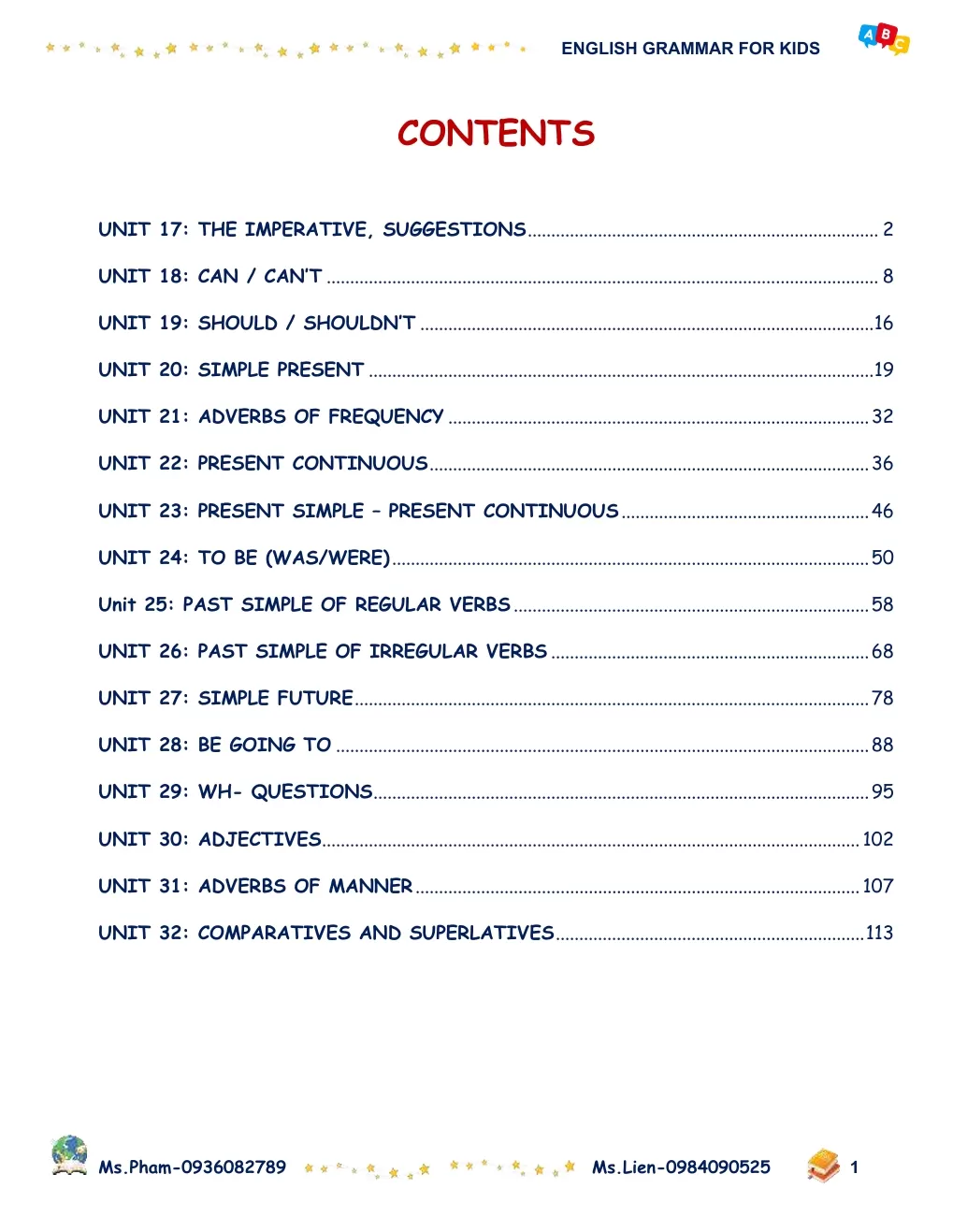 Worksheet - Grammar book for kids - Tập 1